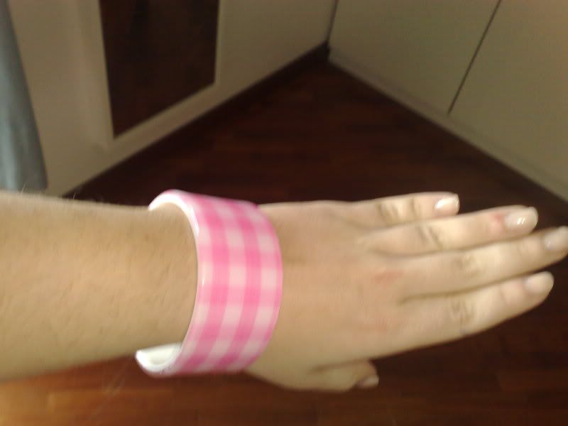 Bangles in stampa vichy bianco e rosa.Mai utilizzato,cedo a 7 euro (ss escluse).